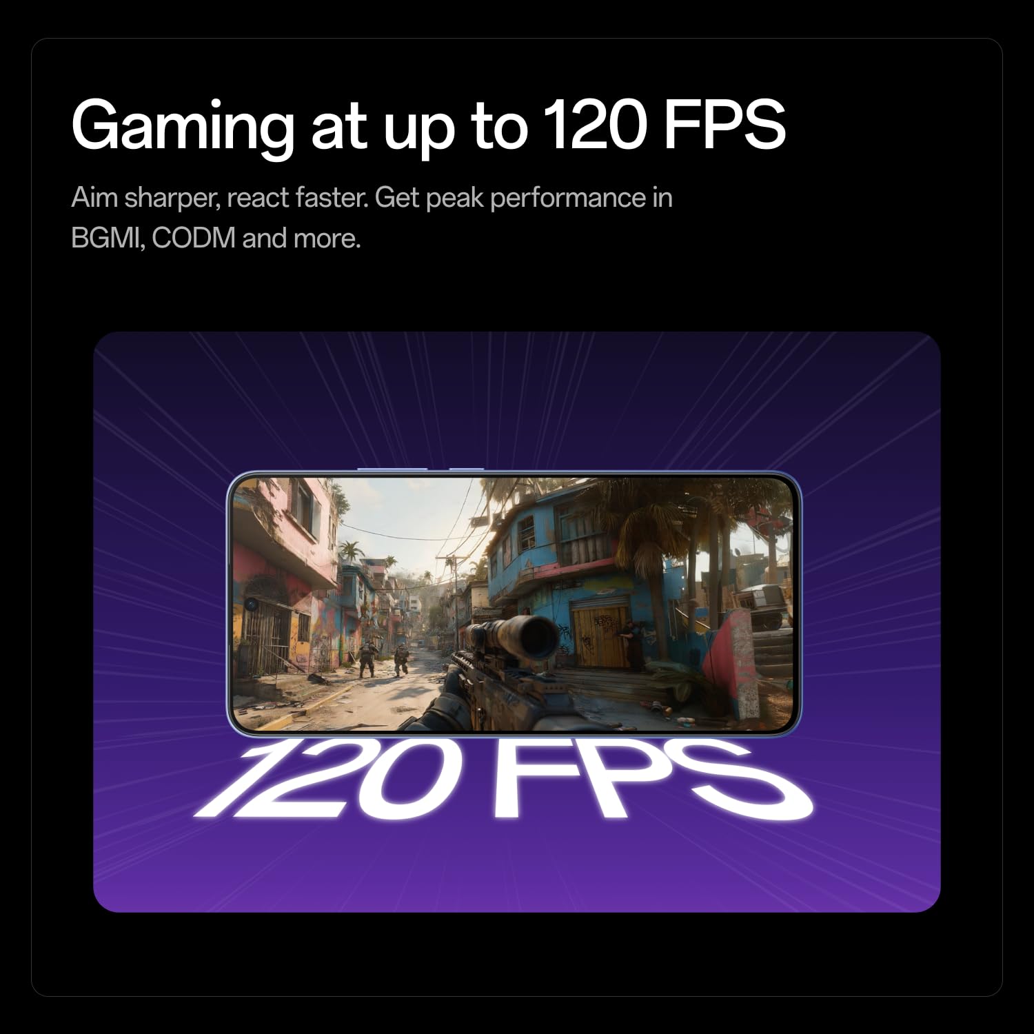 - Dominate BGMI and CODM at up to 120 FPS: Ultra-fluid, lag-free gaming with high touch response rates gives you that split-second edge in every battle.