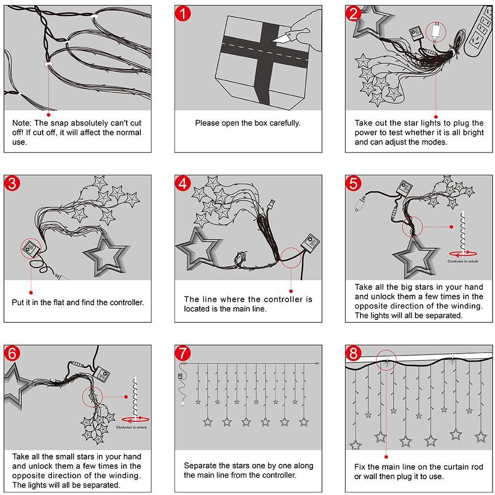 Quace 12 Stars Curtain String Lights, Window Curtain Lights with 8 Flashing Modes Decoration for Christmas, Wedding, Party, Home, Patio Lawn, Warm White - Warm White