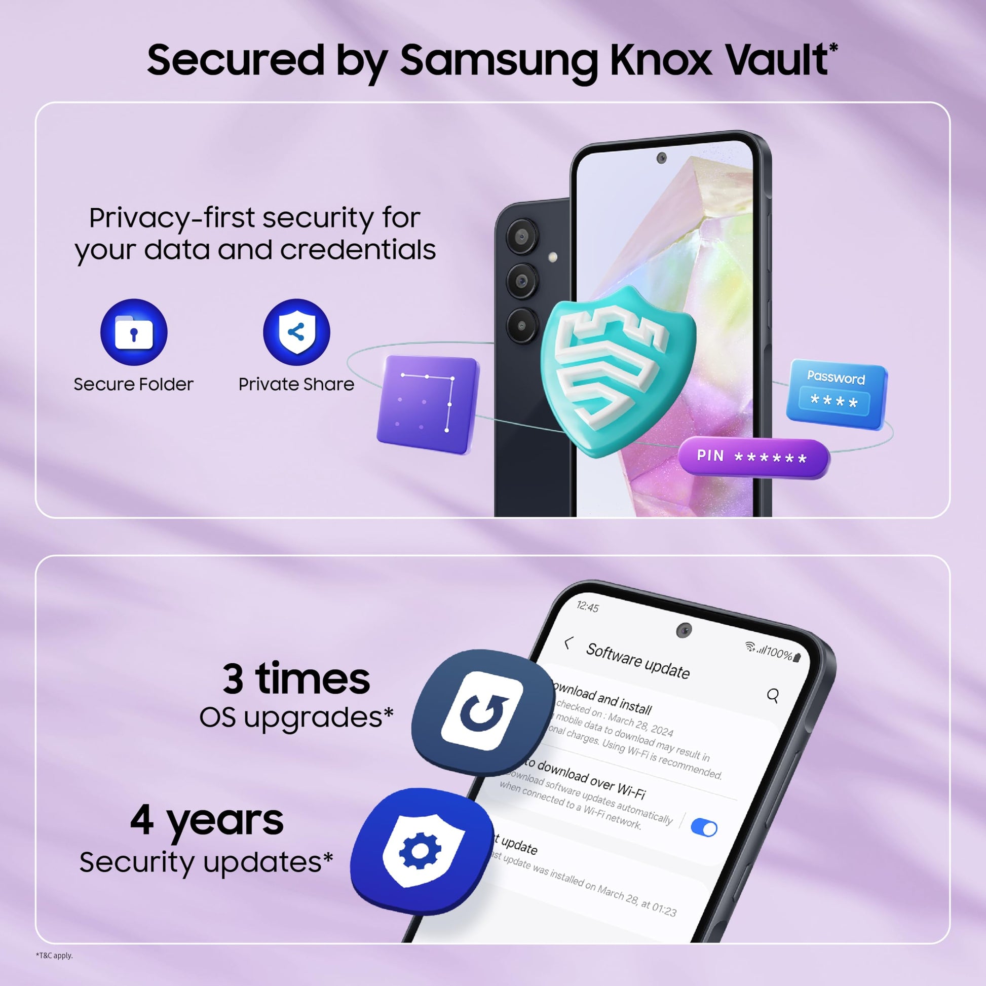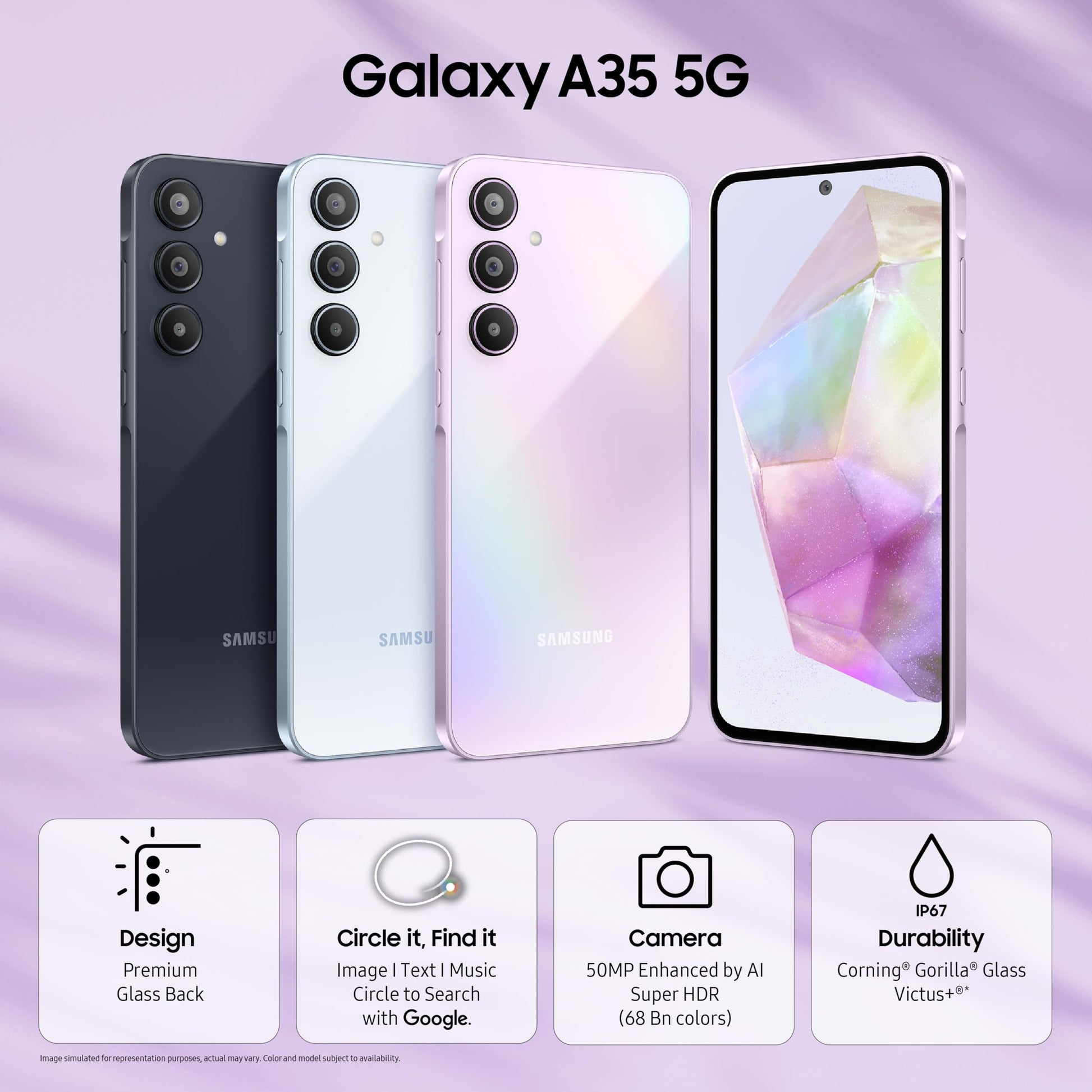 - OS UPDATES & SECURITY - Get upto 4 Generations of AndroidOS Upgrades & 5 Years of Security Updates with Samsung Galaxy A35. Includes 1 Year Manufacturer Warranty for Device and 6 Months for In-Box Accessories.
