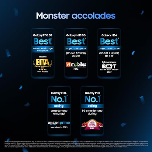 - Monster Upgrades and Convenience - Segment best 6 years Security and OS Upgrades. Monster battery - Get a massive 5000mAh Battery with C-Type Fast Charging (25W Charging Support) for an uninterrupted mobile experience. Samsung Wallet with Tap and Pay and Knox Security.