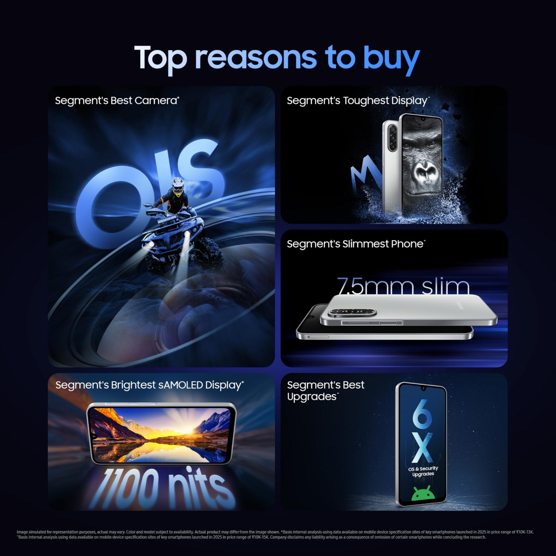 - Monster Durability and Design - Segment's Slimmest smartphone with 7.5mm stunning design. Be worry free with Segment's best durability with Gorilla Glass Victus and IP54 Rating.